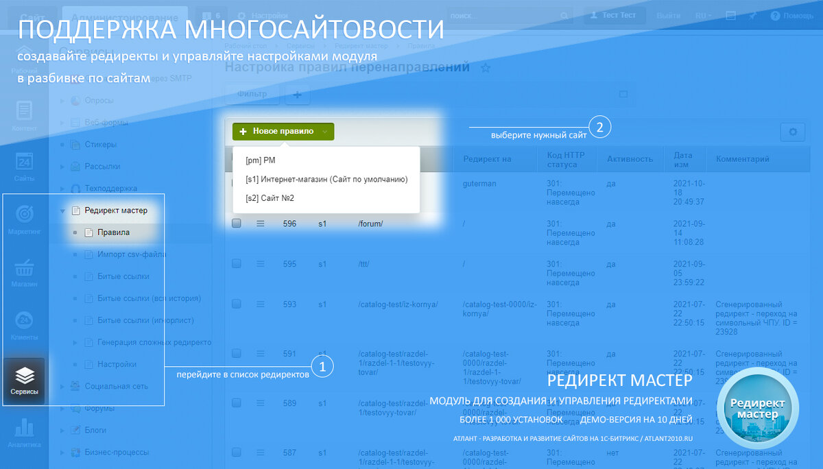 Все редиректы для Битрикс в одном модуле. Редирект Мастер