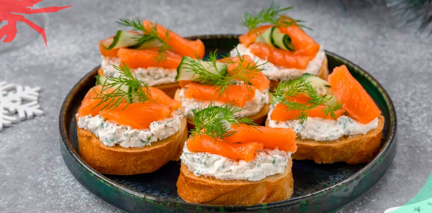 Ингредиенты: Для начала измельчаем укроп и смешиваем его с рикоттой. Затем подсушиваем на сковороде багет. Даем ему остыть. Рыбу нарезаем небольшими кусочками, огурец — тонкими лентами или кружочками. Смазываем багет сыром. Сверху выкладываем рыбу. Украшаем кусочками огурца и укропом. Источник: https://wildcrab.ru/news?id=2266