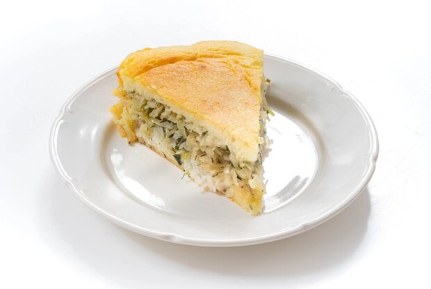 Молотый черный перец по вкусу ИНСТРУКЦИЯ ПРИГОТОВЛЕНИЯ 1.Подготовить все ингредиенты. 2.Приготовить начинку. Капусту и лук мелко нарезать и обжарить на растительном масле 5 минут. 3Уменьшить огонь, влить к капусте рассол, добавить мелконарезанный чеснок, накрыть сковороду крышкой и тушить до абсолютной мягкости, около 20 минут. 4.В конце вмешать мелкорубленый зеленый лук и укроп. 5Рыбу нарезать небольшими кусочками. 6.Приготовить тесто. Растопить сливочное масло, остудить и смешать с кефиром и сметаной. 7.Добавить немного соли, 1 яйцо и перемешать. 8.Муку смешать с разрыхлителем, просеять в смесь масла и яйца и замесить тесто. Оно должно быть настолько жидким,