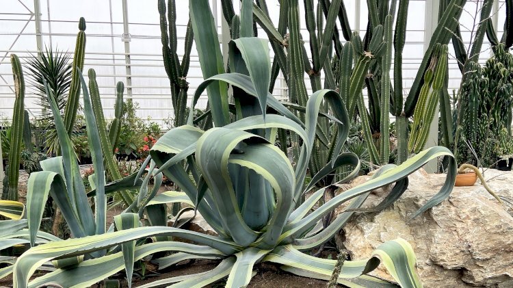 Одной из достопримечательностью Кузбасса считается Ботанический сад с самым большим за Уралом стеклянным куполом. Сад хорош в любой сезон, поэтому стараемся посещать этот райский уголок не реже двух раз в год. На территории предусмотрены скамьи для отдыха гостей и можно фотографировать на камеру телефона сколько душе угодно, чем я и занимаюсь во время посещений. Сад состоит из двух оранжерей. В одной представлены растения тропические, в другой - субтропические. Сегодня покажу растения субтропического сектора и немного расскажу о них. Агавы. Выглядят агавы очень экзотично! Сизые и зелёные с жёлтыми прожилками. Ощущение такое, будто огромные кальмары вышли на берег и исследуют своими щупальцами сушу. В ботаническом саду агавы растут исключительно для целей познавательных и эстетических. А вот в местах естественного обитания, в частности в Мексике, это не только ландшафтное растение, но и растение хозяйственного назначения. Являясь суккулентом, агава прекрасно себя чувствует в засушливы