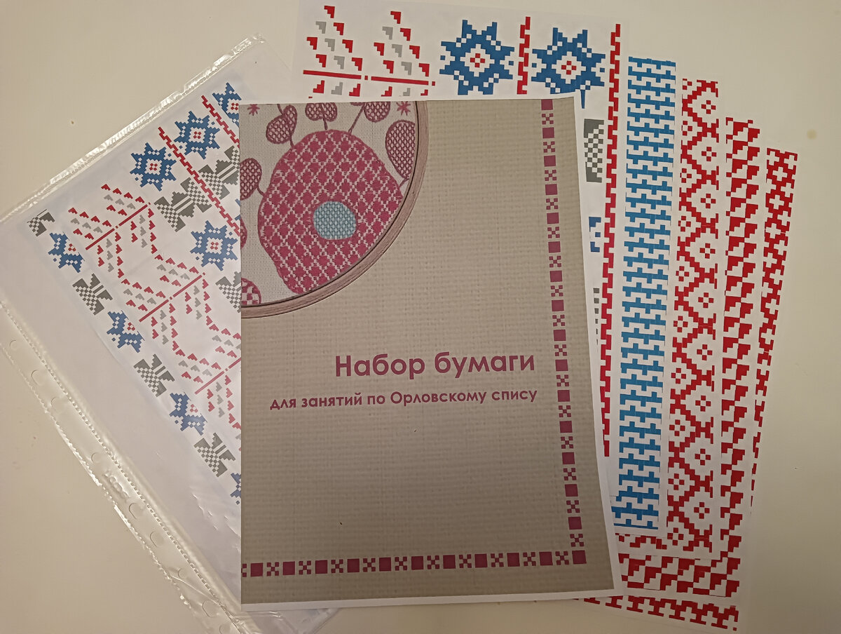 Как познакомить детей со старинной вышивкой. Пособие предназначено для воспитателей детских садов, педагогов дополнительного образования, студентов профильных учебных заведений, заинтересованных родителей и всех любителей вышивки. «Набор бумаги для занятий по орловскому спису» - это небольшая практическая часть авторской образовательной программы моей студии. Он состоит из листов с красно-синими узорами, взятыми с подлинной старинной вышивки. Уникальная техника шитья встречалась только в Орловской области, отсюда и получила своё название. С более подробным анализом вышивки можно познакомиться в моих предыдущих статьях. Традиционная вышивка орловский спис отличается необычностью как самого рисунка, так и мелкими заполнениями внутри него - узорчатыми швами –бранками. В старину вышивка чаще всего выполнялась на концах полотенец, которые служили дорогим памятным подарком, поэтому, как правило, вышивались рисунки со скрытым смыслом. Некоторые из таких образов – «Птица-Пава» и «Древо жизни»