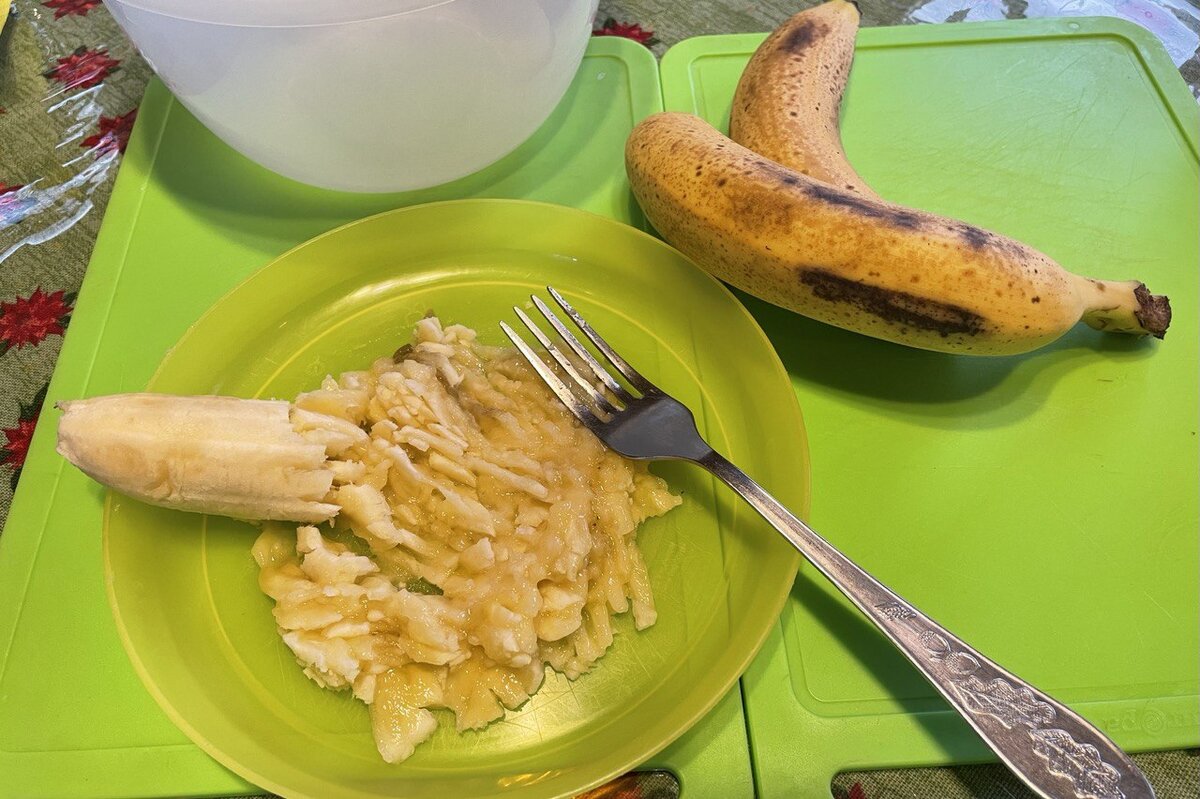 Это рецепт один из самых мною часто используемых. Особенно, когда бывают гости дома, а они у нас бывают довольно регулярно. Можно потратить раза в три больше времени на приготовление торта, можно попереживать за бисквит, который без определенных навыков часто подводит. А надо ли это? Предлагаю всего пятнадцать минут для приготовления теста. Ещё 50 минут время на духовку - у вас десерт на любой случай. Его можно подавать порционно горячим с мороженым - удивительно вкусно! Можно остудить и предлагать как выпечку к чаю. Можно просто съесть кусочек в своё удовольствие. Банановый хлеб. Для приготовления этого хлеба желательно очень спелые, а лучше перезревшие, бананы, всего три штуки среднего размера. Их надо очистить от кожуры, и в отдельной миске вилкой превратить бананы в банановую кашицу. 100-120 грамм мягкого маргарина размять со стаканом сахарного песка. Сюда же добавить два яйца, полный стакан и две столовые ложки просеянной муки, три четверти чайной ложки соды. Перемешать.