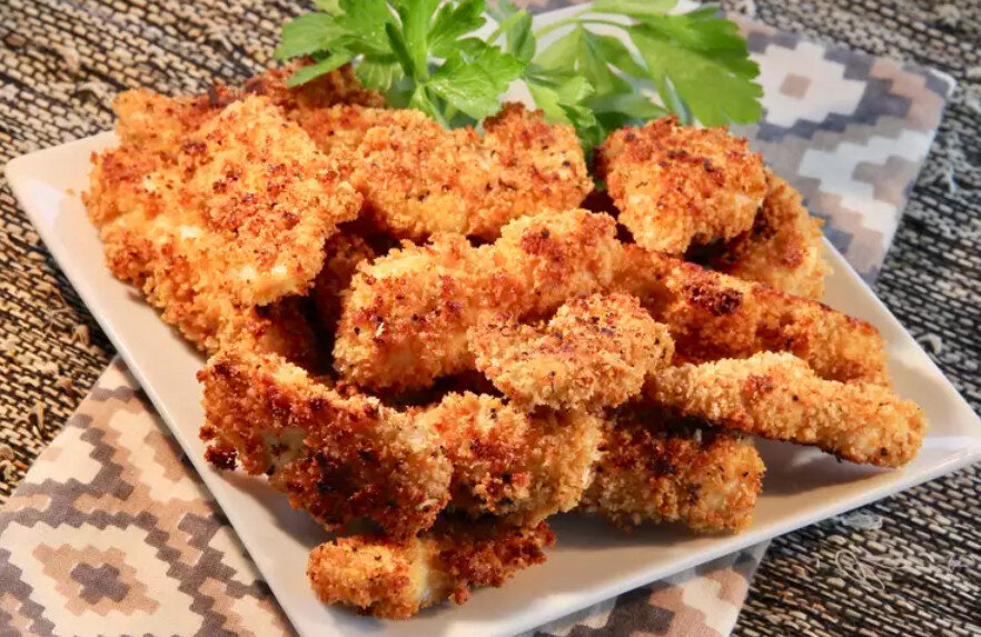 Кусочки куриного филе в пряной воздушной панировке в духовке