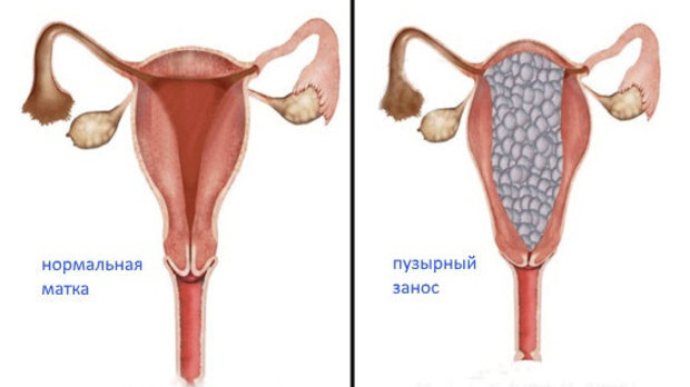 Пузырный занос - это хромосомная патология, разновидность гестационной трофобластической болезни, то есть развития специфической опухоли, связанной с беременностью. Считается предзлокачественным заболеванием. При этом осложнении беременности происходит нарушение развития и роста трофобласта - наружного слоя клеток эмбриона. Пузырьки - это кистозно расширенные ворсины хориона, которые растут и собираются в гроздья.