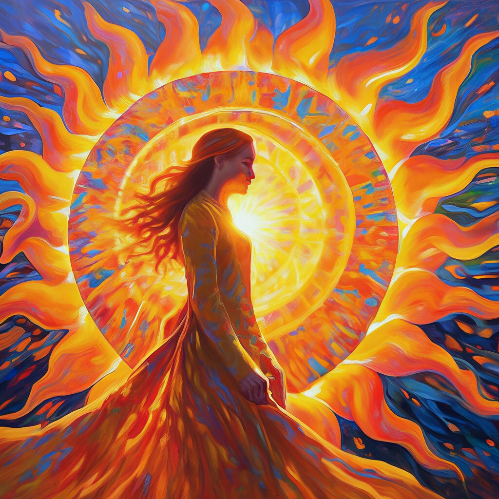 Я солнце в себя вбирала, длинную ночь провожала, длинную ночь провожала, ей спасибо сказала, что снегами укрывала землю, утепляла её шубой белой, высыпала горохом звёзды, серебром покрывала дороги. Провожала её в путь короткий, открывала двери солнцу, чтобы светило над землёй ярко, и дарила цветы миру. Семена рассыпала звёздами, укрывала дорогу золотом, раскрывала таланты множеством, и несла песню звонкую, ручейка, земли матери, шальных коней скачку по степи, соловьиной трели любви мелодию, лебединой песни верности. Материнской ласки нежности, млечным соком грудь напитала, молоком наполняла чаши я, насыщала детей малых я вечной жизни любви Божественной. Наполняю жизнь свою благостью, наполняю жизнь свою достаточностью, наполняю жизнь верой правдою, накрываю светом чудным, что из сказок волшебных взятый, силой мудрости и знаний, открытых для всех кто жизнь на земле любит. Тот плетень что сплели завистники, рассыпался от ветра солнечного, ту дорогу что засЫпали, расчищали со мной Ангелы,