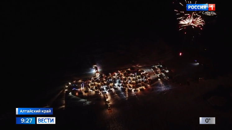 Фигуру составили на взлетно-посадочной полосе заброшенного аэродрома в Рубцовске. Снеговик получился масштабным ─ 100 метров в длину и 45 ─ в ширину. Большой предновогодний флешмоб прошел и в Туве. Сто автомобилей выстроились в огромную елку. Гигантскую звезду изображали машины Госавтоинспекции с мигалками. Вместо новогодних гирлянд ─ включенные фары. А в Кемеровской области, в Шерегеше, лыжники на горе развернули флаг длиной больше 1,5 километров. Авторы идеи – сотрудники одного из крупнейших химических предприятий Сибири, которые компанией приехали покататься на лыжах. Во флешмобе приняли участие около 350 человек. Результат зафиксирован официально, его внесут в Книгу рекордов России.