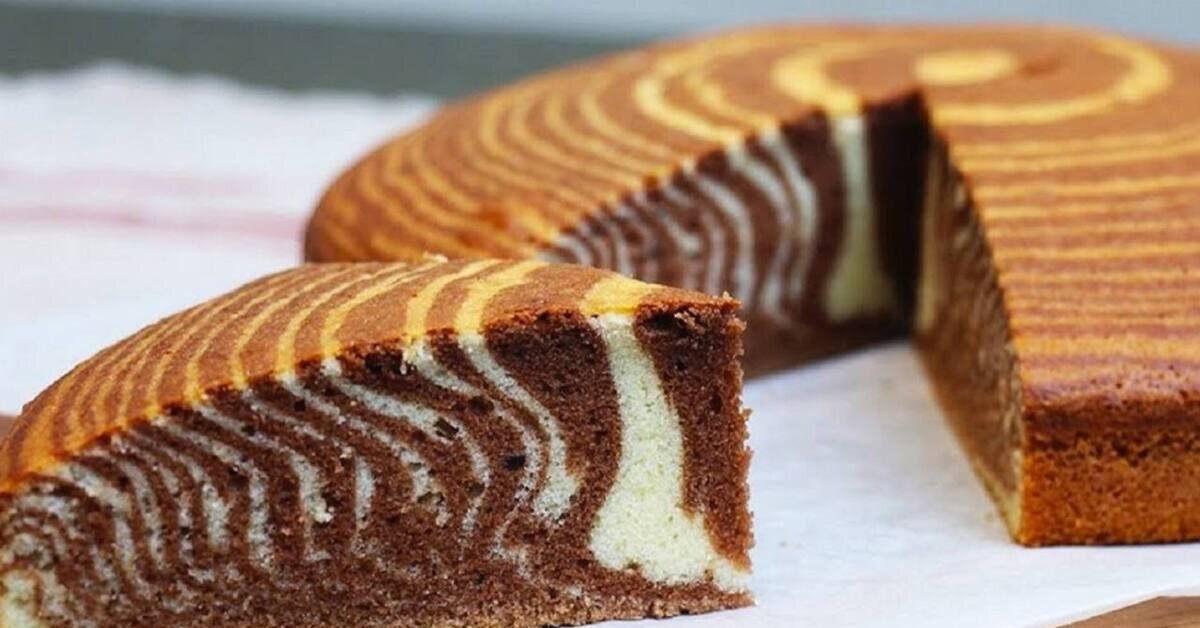 2. Отделите половину теста и добавьте в него какао. Хорошенько перемешайте. Форму для выпечки застелите фольгой и смажьте сливочным маслом. В центр налейте немного белого теста, потом темного. И так продолжайте по ложке лить тесто, чередуя, пока оно не закончится. Зубочисткой проведите линии от центра к краям. Получается красивый рисунок.