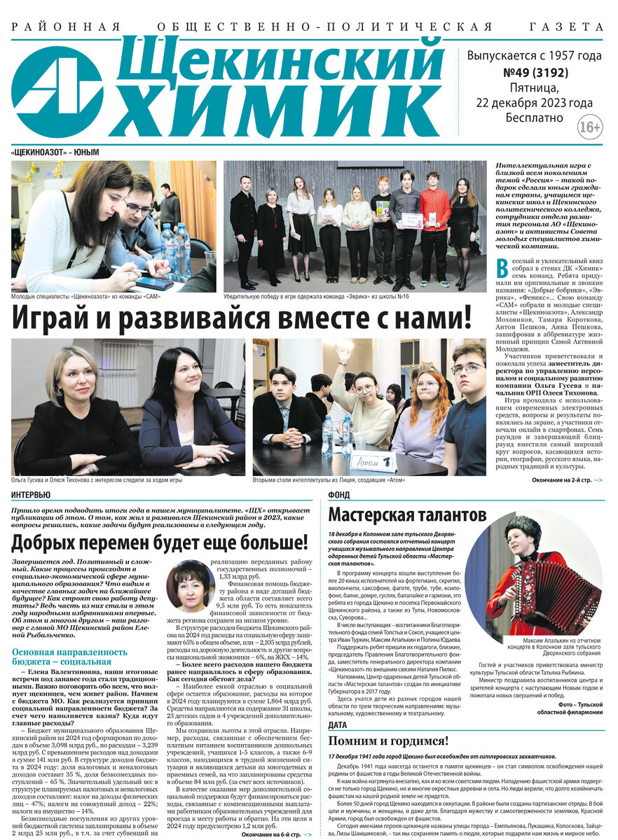 — социальная ответственность: компания «Щекиноазот» закупила около 4 тысяч новогодних подарков для детей;