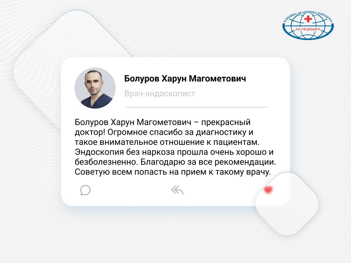 Если вы в руках профессионала, такое возможно. И у нас такие профессиональные специалисты есть. Болуров Харун Магометович — врач-эндоскопист АО «Медицина» (клиника академика Ройтберга). Стаж — 8 лет.