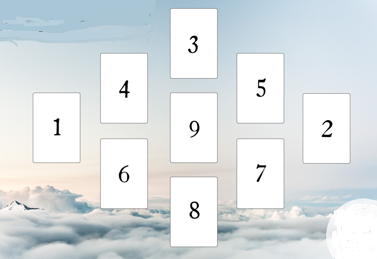 Иногда бывают ситуации и человек не может в себе разобраться, я предлагаю такой расклад. С помощью него можно разобрать, как отношения к текущей ситуации, так и ваши психологические проблемы. Схема расклада Таро. Разговор с будущем Я ......................................................................................3.................................................................... .........................................4..............................................................................5................................. .....................1.............................................................9..................................................2.................. .........................................6.............................................................................7................................... ...................................................................................8..........................................................