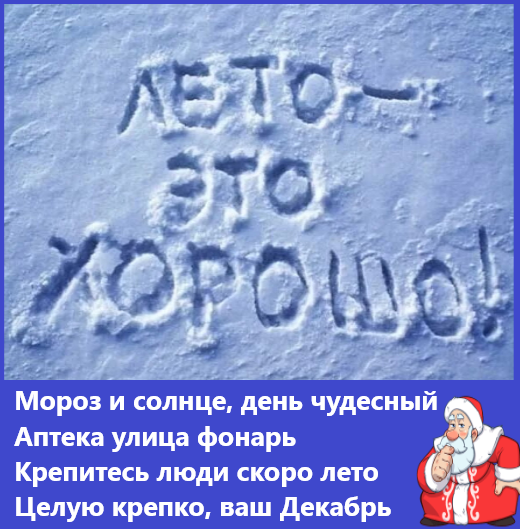 Дорогие мои друзья и читатели, вот и наступил этот день - 22 декабря, когда ночь, неохотно и со скрипом, но все же потихоньку начинает делаться короче, уступая место солнечному свету. Которого (уж признаемся друг другу!) нам так не достает в эти хмурые декабрьские денечки Но не стоит расстраиваться, ведь благодатное Лето приближается к нам с каждым зимним днем! Но нельзя забывать и о том, что встреча Нового года уже скоро! Очень скоро, не успеешь оглянуться и как следует мандаринами с шампанским запастись, как вот тебе раз - стоит на пороге долгожданный гость! И поздравляет, поздравляет... очень душевно так поздравляет... И подарочков много всяких-разных получит каждый из нас на Новый год Некоторые из них, правда, так и останутся невостребованными А некоторые пожелания доброму Дедушке Морозу окажутся не слишком корректно сформулированными Наши домашние питомцы тоже готовятся к встрече Нового года: И все получат свою порцию праздничного настроения от нашего главного волшебника страны!