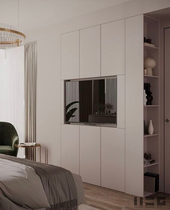Телевизор можно гармонично вписать в интерьер, выбрав для него правильное место и подходящее крепление. Рассмотрим подробнее несколько идей: Встроить телевизор в стену Этот вариант отлично подходит для современных интерьеров и помогает сохранить минималистический вид комнаты. Кроме того, встроенный телевизор может стать центральной точкой интерьера, к которой будут привлекаться взгляды. Поставить на тумбу Это классический вариант, который подходит для большинства комнат. Стенд или тумба позволяют разместить телевизор на удобной высоте и предоставляют дополнительное пространство для хранения. Использовать подвесной кронштейн Это позволяет сохранить место и делает комнату более современной и стильной. Подвесной кронштейн позволяет установить телевизор на любой высоте и под любым углом, что обеспечивает большую гибкость в оформлении интерьера. Поставить в угол комнаты Такое расположение поможет оптимизировать пространство и обеспечить хороший угол обзора. Угловое размещение телевизора поз
