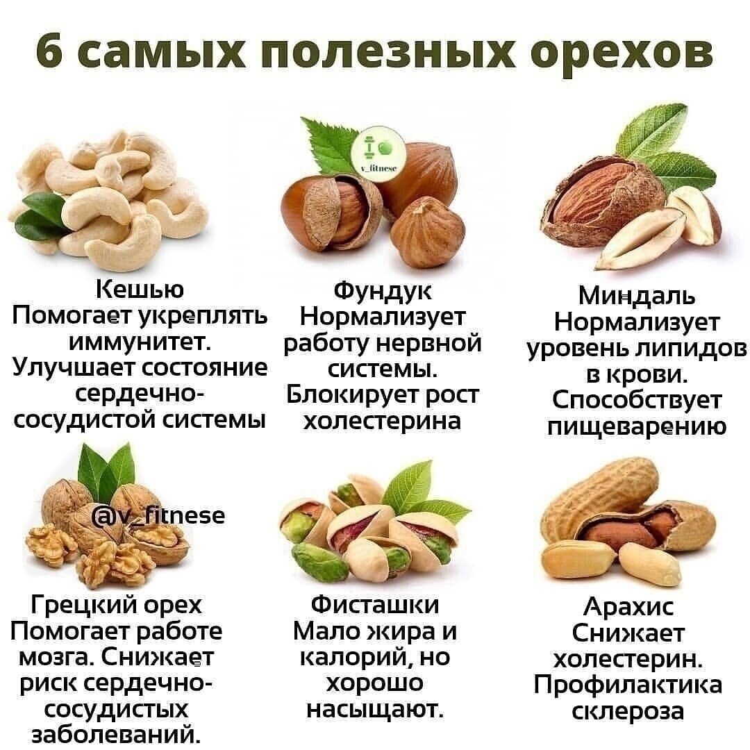 Здравствуйте, мои дорогие подписчики и читатели! Рада новой встрече с вами. Сегодня поговорим про такой полезный продукт, как орехи! Это действительно очень полезная вещь, кладезь витаминов и минералов. Каждый орех по своему полезен. И на вкус они тоже разные. Кто какие любит. Мои любимые орехи- грецкие! И конечно кедровые🤗. Но по цене конечно😏! Для правильного питания орехи очень полезны. А при похудении нельзя забывать про их большую калорийность. Но по несколько штук в день можно и нужно употреблять. Вот для вас топ 6 самых полезных орехов для здоровья. Ешьте свои любимые и будьте здоровы!!!! А в моём меню на завтрак омлет. Омлет с брокколи-132 гХлеб зерновой-23 г. Масло сливочное-8 г .Ветчина из индейки-14 гКофе с молоком-180 г. На перекус масса творожная-51 г. Хлеб-11 г. Арахисовая паста-6 г. Цикорий с молоком- 180 г. На обед крабовый салат с заправкой из сметаны и горчицы-85 г. Котлета из фарша говядины и индейки-56 г. На второй перекус съела хурму-78 г. А на ужин