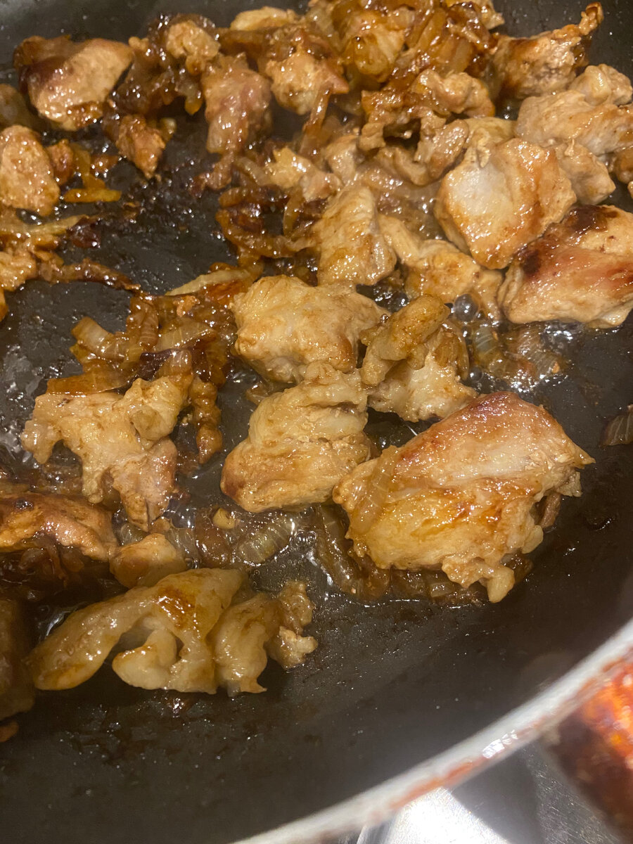 Жареная свинина - самый универсальный и проверенный путь к сердцу мужчины. А что если внести в классическое блюдо нотку азиатской кухни? Давайте попробуем😉 Нам потребуется: 1 упаковка рагу из свинины (400 гр.) 1 крупная луковица растительное масло для жарки 3-5 столовых ложек соуса Унаги Дополнительно я не добавляю соль, поскольку соус содержит достаточно много соли, Разогреваем масло в сковороде и бросаем туда мясо. Оно уже нарезано, остается лишь проверить, нет ли чересчур крупных кусков. Если таковые найдены - разрезаем. Как только мясо начало покрываться корочкой - кладем крупно порезанный лук и перемешиваем. Жарим на средне-сильном огне без крышки. Не забываем помешивать и при необходимости подливать масло. Вливаем в сковородку соус Унаги и перемешиваем. Ждем, пока не появится карамелизация и одуряющий запах. Время, увы, не засекла. Если мясо сыровато, то выключаем плиту, накрываем сковороду крышкой и позволим мясу дойти до готовности самостоятельно, минут эдак 10-15. Приятног