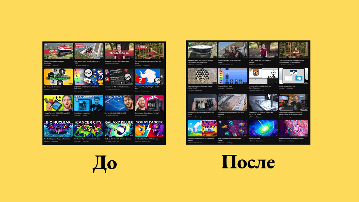Я сделала уже несколько десятков обложек для своих видео. Постепенно шла к своему стилю, но каждый раз, делая новую, думаю, как сделать её лучше предыдущих. Тем временем есть расширение, которое убирает обложку и показывает обычный стоп-кадр из видео. А ещё меняет название видео на менее зазывающее. Старый-добрый YouTube, когда ещё не было большого количества блогеров. Пусть даже и содержание остаётся прежним. Если верить статистике с сайта, то: ▫️у расширения 30 202 пользователя ▫️83 371 обновлённых названий ▫️44 498 реальных обложек. Что сказать? Если вам по душе реальная действительность без контентных красок, то попробовать стоит. Поддержать канал: лайком, комментарием, подпиской или донатом