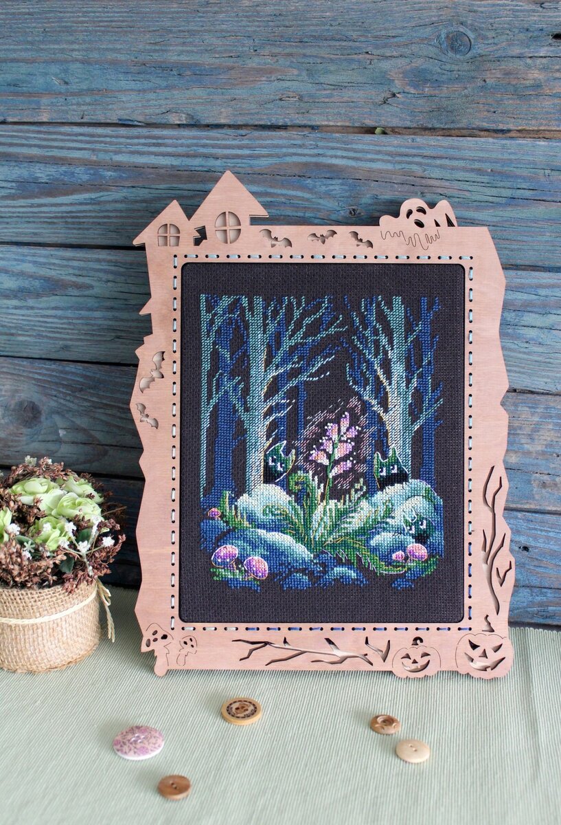 Всем большой вышивальный привет! МП Студия выпустила новые необычные наборы на черной канве. Для этой фирмы, действительно, необычные - по-моему МП Студия предпочитает разработки на светлой основе. Да и многих вышивальщиц останавливает темный цвет - будем откровенны, плохо на темном видны отверстия и вышивать тяжело, особенно вечерами и в пасмурную погоду (а у нас она пасмурная 8 месяцев в году, май-август - еще терпимо, а вот остальное время года - не до черной канвы). Но есть у наборов на темной канве и преимущества - яркие нити на ней смотрятся еще ярче, предметы выделяются и смотрится сюжет (грамотно подобранный, конечно) очень выигрышно! Самая последняя анонсированная новинка - набор арт. №М-662 «Папоротник зацвёл». В состав набора входит: черная канва 14 каунта, нитки мулине ПНК им.Кирова 15 цветов, разобранные на органайзере, игла, схема и руководство по вышиванию. Размер: 20*16 см. Сюжет с мистическим уклоном, мухоморы фиолетовые, головы сов (это же совы, правда?), в
