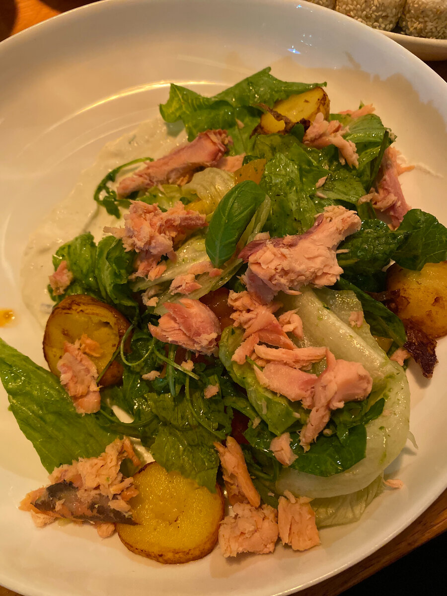 Салат с копчёной рыбой, Пад Тай, роллы и пицца Груша с Дор Блю в Своей компании...