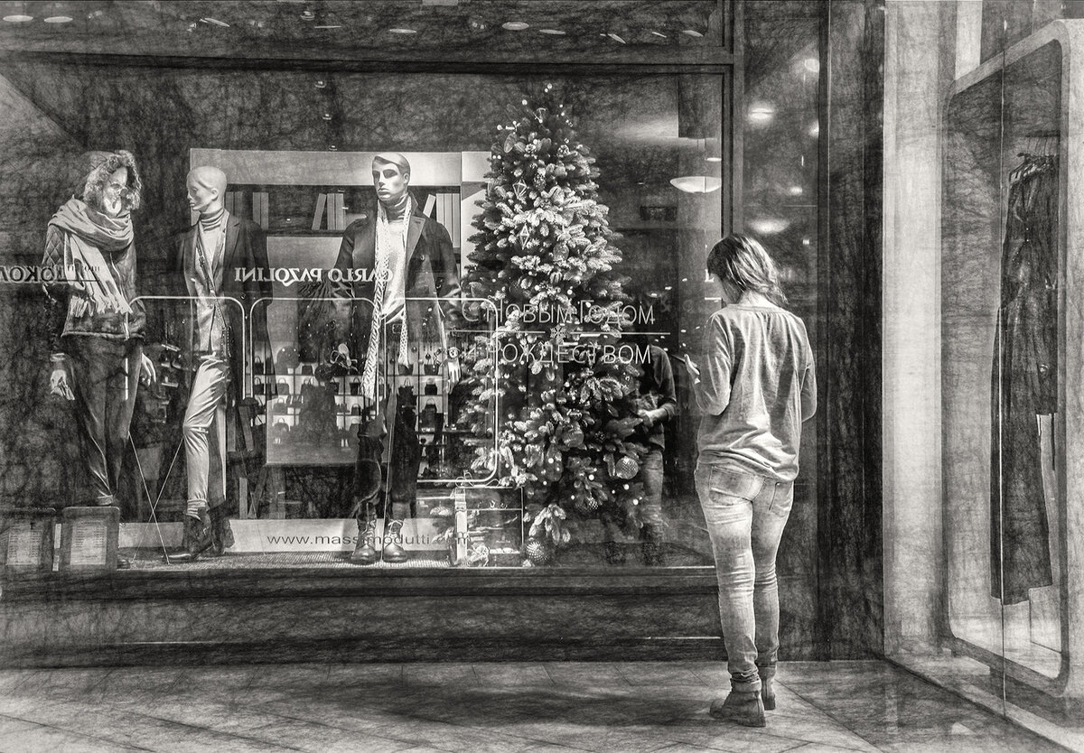 витринах товары.