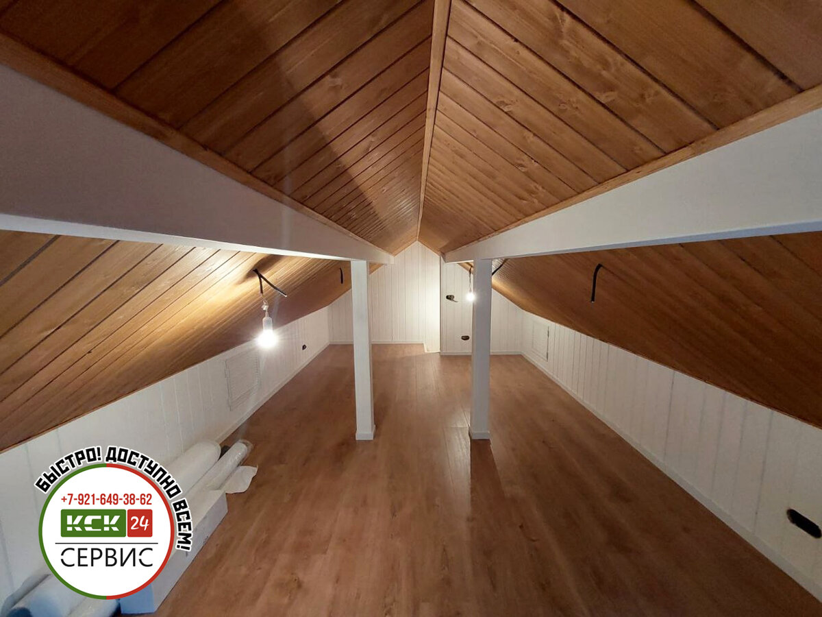 Помимо наружной отделки фасадов и кровельных работ, мы делаем внутреннюю отделку, утепление домов, устранение кровельных протечек, обустройство мансард.