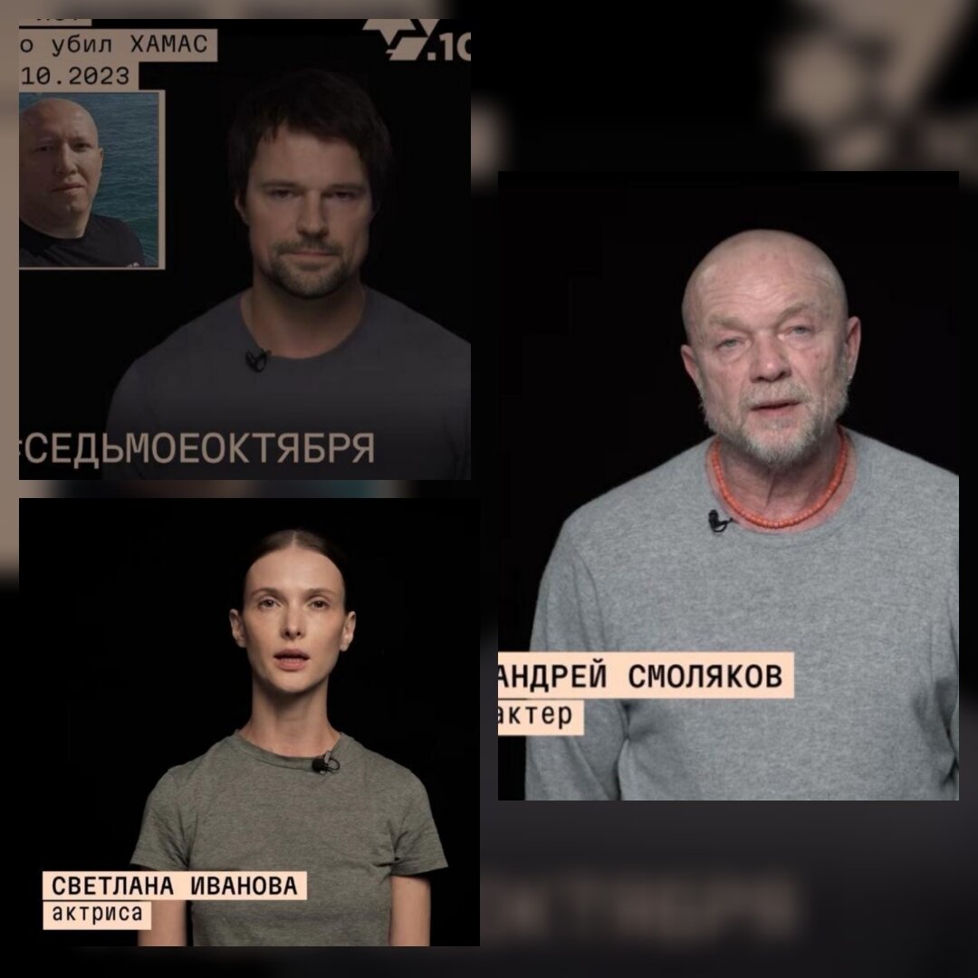 Данила Козловский, Леонид Каневский, Светлана Иванова, Андрей Смоляков, Алиса Хазанова, Кирилл Сафонов, Евгений Хавтан, Вениамин Смехов, Ксения Раппопорт наравне с новоявленными израильскими гражданами иноагентами Анатолием Белым, Михаилом Козыревым, Максимом Галкиным, Андреем Макаревичем, Максимом Покровским, Артемием Троицким и Михаилом Шацем записали скорбные ролики про жертв, погибших в Израиле 7 октября 2023 года в результате атаки ХАМАС. Скорбят на черном фоне, лица... ну уж какие есть. Скорбные. Ничего подобного никогда, ни разу на протяжении почти 10 лет, они не записывали про жертвы Донбасса. А их было не меньше, чем в Израиле. Или про погибших от обстрела жителей приграничных регионов — Брянской области и Белогородчины. Какой лицемерный флеш-моб. Фальшивый. Безусловно, жаль всех погибших. А как же дети сектора Газа? В чем их вина? В чем конкретно они виноваты? Если уж вы не хотите смотреть на Аллею Ангелов в Донбассе, на брянского парня, который получил ранение, спасая д