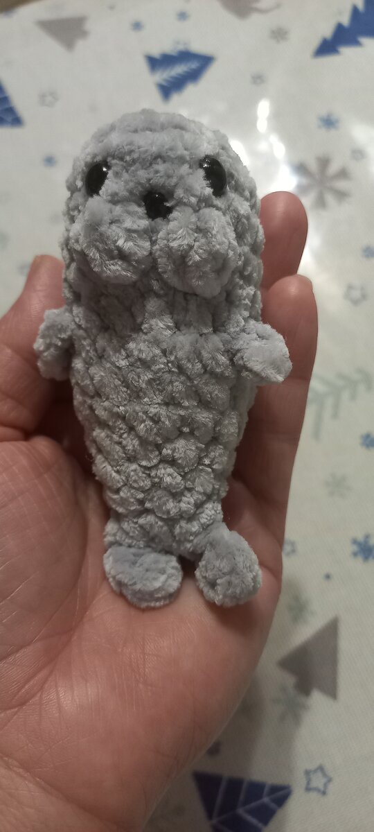 1 ряд. 6сбн. в КА 2 ряд. 6пр.(12) 3 ряд. (1сбн.,пр.)×6 (18) 4 ряд. 18сбн. 5 ряд. 6сбн., 3уб., 6сбн.(15) 6 ряд. 6сбн.,(вяжем мордочку) Ш( за переднюю полупетлю 3псн с одной вершиной),1сбн., Ш, 6сбн.(15) 7 ряд. 15сбн. 8 ряд. 4сбн.,(вяжем ручки) 3 вп за ППП,со 2 п. От крючка, 2сбн,сс в ту-же петлю , 5сбн.,ручка, 4сбн.(15) 9 -10 ряд. 15сбн. Вставить глазки и носик(6 -8мм.) 11 ряд. ( 1сбн.,уб)×5 (10) 12-13 ряд. 10сбн. 14 ряд. 5уб.(5) 15 ряд. 2сбн.,хвост( 3вп. со 2петли от крючка 2ПСН в одну петлю,1сбн.),1сбн, хвост, 2сбн.(5) Ниточки закрепить,отверстие сшить,набиваем по ходу вязания.