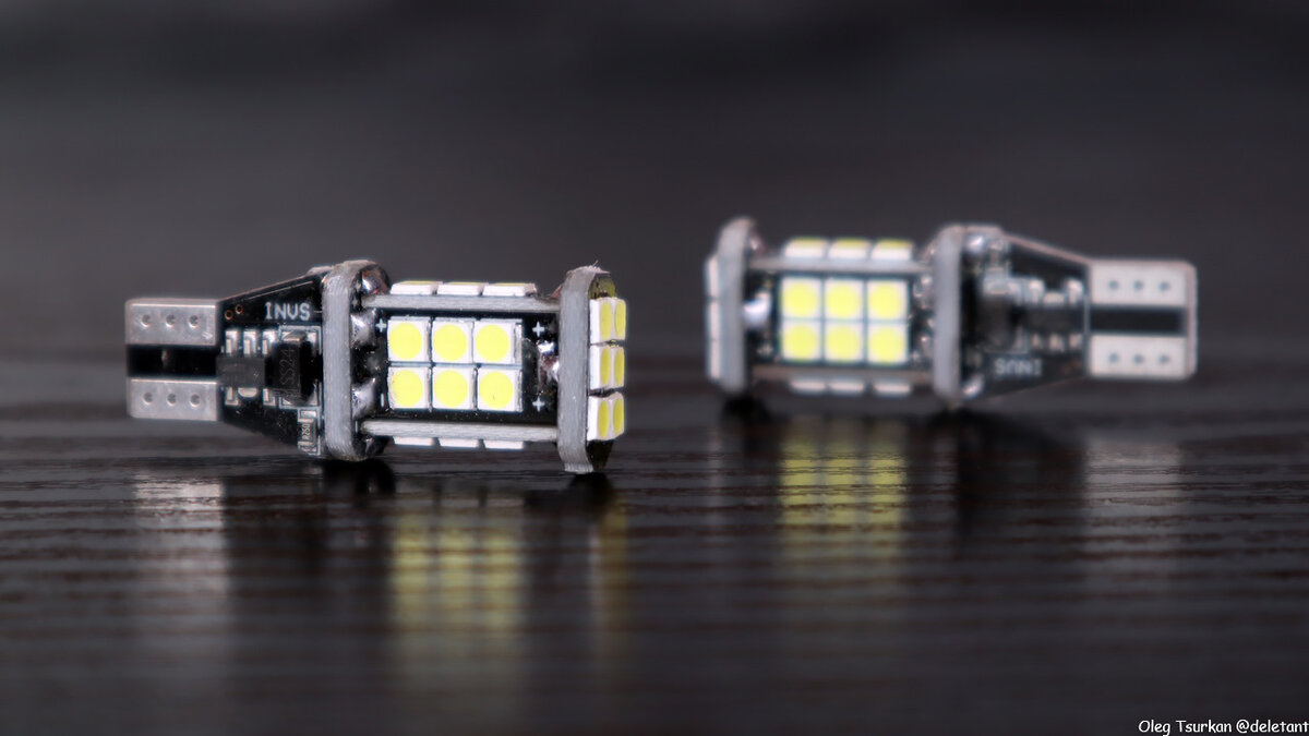 Геометрические параметры самой лампы имеют 40 миллиметров высоту и 10 миллиметров ширину на разъёме питания, что соответствует стандарту 921/T15/W16W.