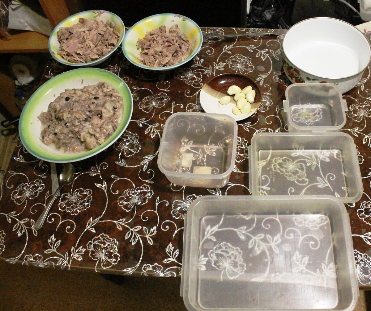 часть первая) https://dzen.ru/profile/editor/id/5f3d2498f7bdb57ea2675a15/658e46b22a04ce112524b8bc/edit (часть вторая) https://dzen.ru/media/id/5f3d2498f7bdb57ea2675a15/kak-eto-na-praktike-proishodit-2-658f5d2deb35721ecb79c130 (часть третья) https://dzen.ru/a/ZY-CI-EygRpWuajn После двух часов варки, я выключаю плиту и пока бульон замерзает на только что выключенной плите, булькая от недовольства, в приготовленные посудинки, я крошу чеснок, нарезая зубчики тоненькими пластиками. Потом приваливаю его тем, что съедобного осталось от ножек, добавляю мясо индюшатины и заливаю бульоном. Жду когда остынет и загустеет. Остывшее, закрываю крышками и убираю в холодильник. ...А, завтра есть будем... Да, хоть с утра...