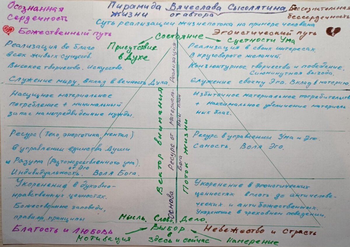 Понимая суть реализации жизнепотока в принципе Пирамиды жизни, человеку остаётся только совершенствоваться в укоренении в правильной основе и учиться управлять своим вниманием чтобы уметь различать, что есть Божественный путь, а что является путëм Эго.