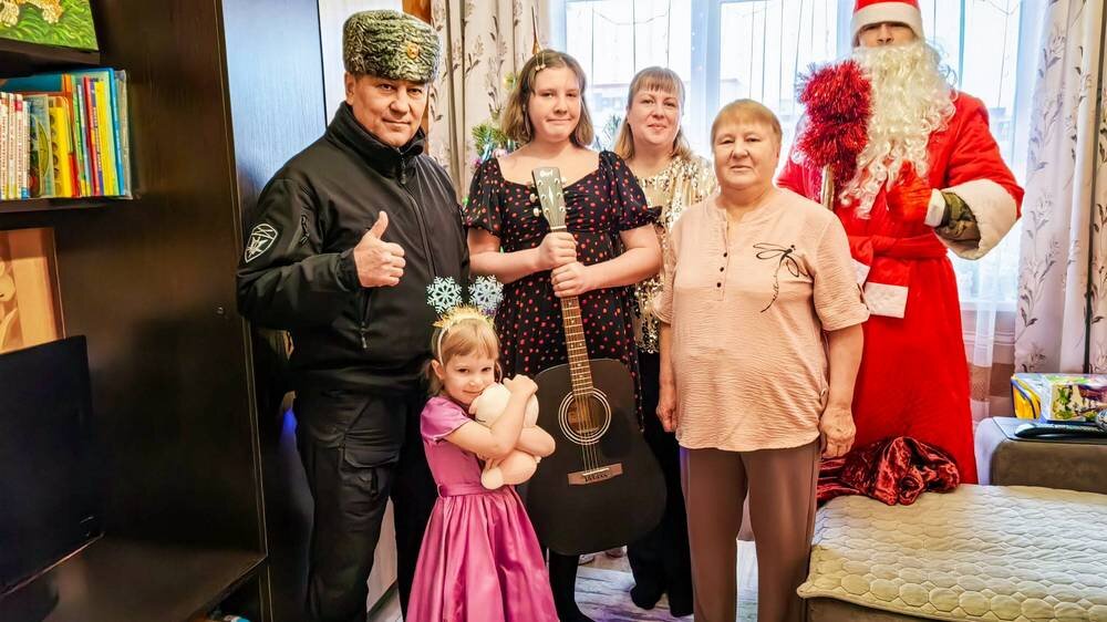 В Брянске начальник регионального управления Росгвардии Иван Ванчугов вручил 12-летней Елизавете гитару в рамках акции «Ёлка желаний». Девочка написала письмо с просьбой получить акустическую гитару, и спустя несколько дней ее желание сбылось. Вместе с начальником Росгвардии в гости к Елизавете пришел Дед Мороз специального назначения, который провел мастер-класс по игре на гитаре. А младшей сестре Елизаветы вручили мягкую игрушку и сладости. Отец девочек находится в зоне проведения специальной военной операции и выполняет служебно-боевые задачи. Брянские росгвардейцы исполнили мечты детей с «Ёлки желаний»