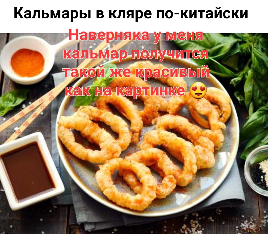А вот и сам рецепт собственно 🧐 ну-ка что здесь написано. То что кольца кальмара нужны это и дураку понятно, меня больше кляр интересует.