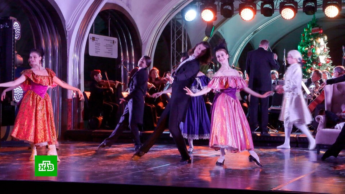 [ Смотреть видео на сайте НТВ ] В столичной подземке показали балет «Щелкунчик» в рамках акции «Ночь в метро». Ночь балета прошла в московском метро. Сценой для «Щелкунчика» стала станция «Маяковская». Шоу состоялось уже после закрытия подземки. Фрагмент «Щелкунчика» представили солисты Большого театра — Игорь Цвирко и Кристина Кретова в сопровождении оркестра. Чтобы артисты не травмировались на скользком мраморном полу, на платформе заранее смонтировали деревянный настил. Колонны и сводчатый потолок станции. Игорь Цвирко и Кристина Кретова, солисты Большого театра: «В Московском метрополитене сконструировали достойную сцену для таких миниатюрных перформансов. Дирижер сегодня к нам стоял спиной — для нас это в новинку, хотя прекрасно дирижировал, знал все темпы, превосходно звучал оркестр». Билеты на этот концерт купить было невозможно. Зрителями стали горожане, которые заранее приняли участие в конкурсе от столичного Дептранса. [ Смотреть видео на сайте НТВ ]