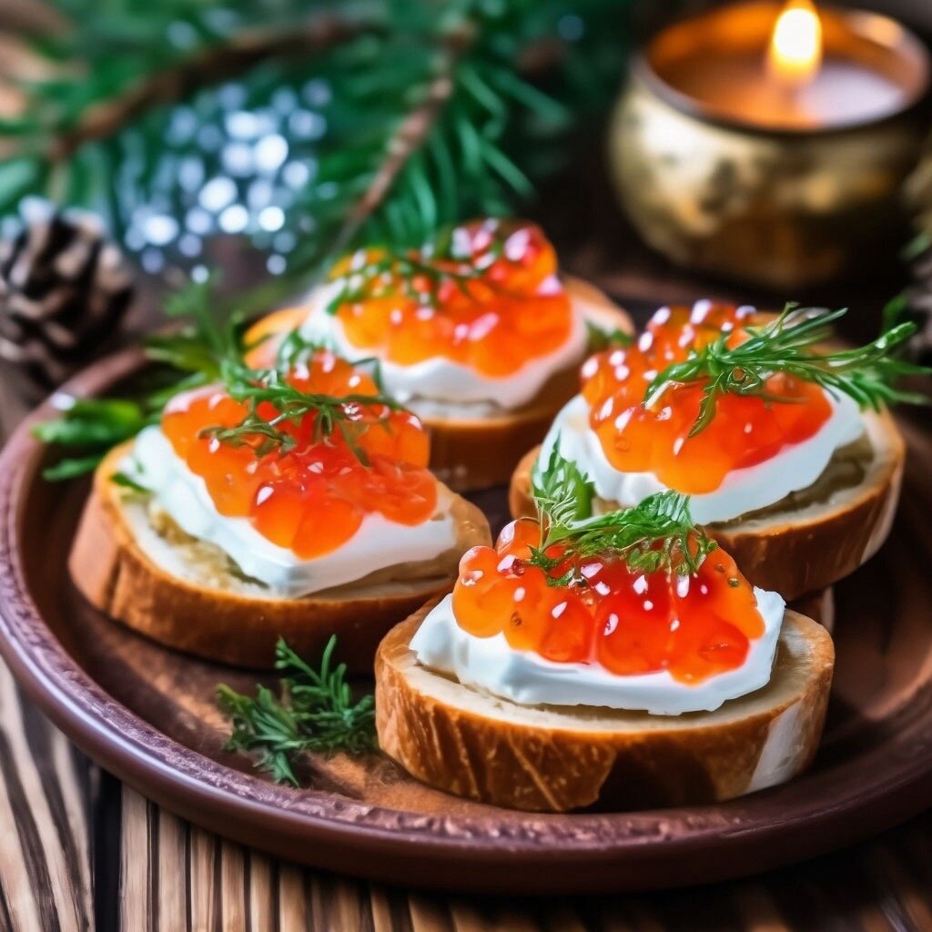 Бутерброды с красной икрой на праздничном столе могут стать настоящим украшением торжества. Они не только выглядят аппетитно, но и являются отличным источником белка, витаминов и минералов. 1. Бутерброд с красной икрой и сливочным маслом Ингредиенты: - Хлеб (белый или черный) - Красная икра - Сливочное масло Приготовление: 1. Нарежьте хлеб на кусочки и намажьте их сливочным маслом. 2. Сверху выложите красную икру. 2. Бутерброд со сливочным сыром и красной икрой Ингредиенты: - Хлеб - Красная икра - Сливочный сыр Приготовление: 1. Разрежьте хлеб на квадраты и намажьте каждый сливочным сыром. 2. Положите сверху красную икру и украсьте зеленью. 3. Бутерброды со шпротами и красной икрой Ингредиенты: - Хлеб - Шпроты - Красная икра - Зелень Приготовление: 1. Намажьте хлеб сливочным маслом и положите сверху шпроты. 2. Посыпьте красной икрой. Украсьте веточками зелени. 4. Бутерброды с семгой и красной икрой Ингредиенты: - Хлеб - Семга - Красная икра - Лимон Приготовление: 1. С