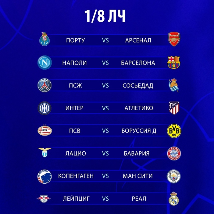 Вот и прошла жеребьевка 1/8 Лиги чемпионов, которую все так долго ждали. Мы получили как очень очевидные пары, так и довольно интригующие. Самой непредсказуемой парой стало противостояние между Интером и Атлетико Мадрид, здесь нельзя выявить определенного фаворита, ведь обе команды похожи стилистически и вполне могут претендовать на проход дальше. А вот самыми очевидными парами стали: Копенгаген – Сити, Лацио – Бавария. Здесь мы явно увидим легкий проход Сити и Баварии в 1/4, ведь при всем уважении к Копенгагену и Лацио шанс того, что они пройдут дальше не больше 10%. Вот такие получились итоги жеребьевки лиги чемпионов. В скором времени выйдет статья с прогнозом и оценкой каждой пары, так что подписывайтесь на канал, чтобы не пропустить следующие статьи.
