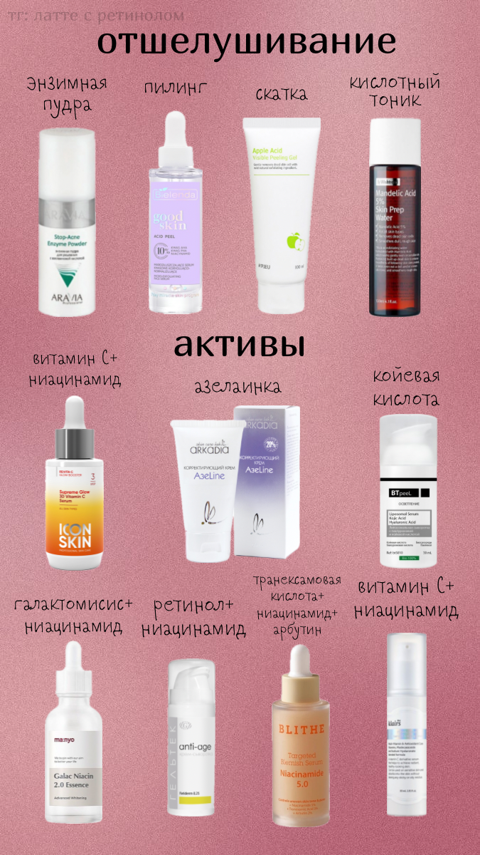 1️⃣Для начала налаживаем базовый уход: 🌱мягкое очищение; ☁️увлажнение; ☀️солнцезащита. С хорошей базой процессы регенерации в коже будут происходить быстрее, а пятнышки постакне станут менее выраженными сами по себе. 2️⃣Далее можно подключать отшелушивание! Оно будет способствовать более быстрому обновлению кожи, что уменьшит видимость постакне. Варианты отшелушивания: *️⃣энзимы (маски/пудры); *️⃣кислоты (пилинги/сыворотки/тоники/скатки). Скрабы не берём, они могут сделать только хуже! 3️⃣Из активов выбираем штучки на осветление и обновление кожи: 🌟 ниацинамид. Делает сразу много всего полезного, а ещё прекрасно работает с постакне и тоном кожи! Берём однозначно. 🌟 стабильные формы витамина C: 3-0 Ethyl Ascorbic Acid; Ascorbyl Glucoside; Tetrahexyldecyl Ascorbate; Ascorbyl Tetraisopalmitate и другие. Ну просто суперзвёзды осветления!! Кстати, зачастую концентраций до 10% (а то и до 5%) более чем достаточно. Могу сделать подробный пост с рабочими концентрациями для каждой формы