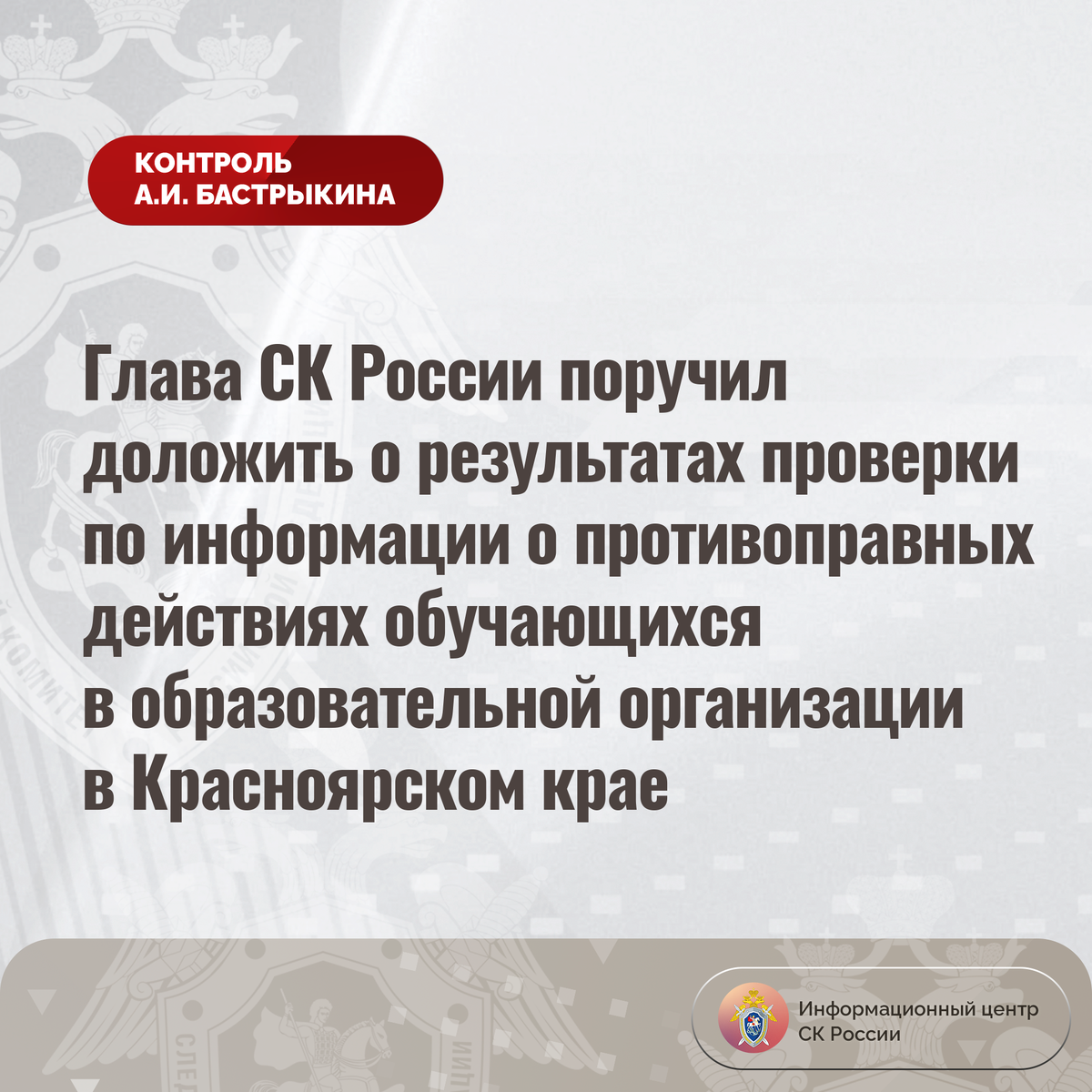 Глава СК России поручил доложить о результатах проверки по информации о противоправных действиях обучающихся в образовательной организации в Красноярском крае