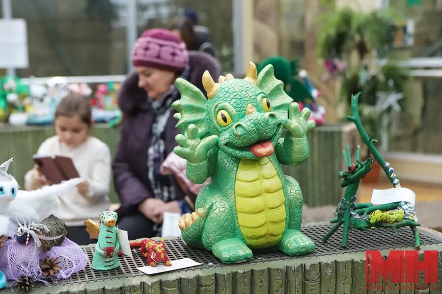 В столичном зоопарке для участников творческого конкурса «Дракон – символ 2024 года!» организовали театрализованное представление 23 декабря. Лучшие работы инициативы представлены в экзотариуме, передает корреспондент агентства «Минск-Новости». Несколько недель назад Минский зоопарк предложил горожанам создать оригинальную поделку — символ наступающего года. Среди критериев оценки — художественный замысел и оригинальность. В субботу участников инициативы пригласили в зоопарк на представление. — Это подарок для всех конкурсантов. Сегодня вход в зоопарк для них бесплатный, так что после награждения они смогут погулять, посмотреть на животных. А лучшие работы мы выставили на втором этаже экзотариума: увидеть их может каждый посетитель, — рассказала младший научный сотрудник зоопарка Оксана Буко. На импровизированном утреннике Дед Мороз, Снегурочка и Баба-Яга поздравили ребятишек и их родителей с наступающими праздниками, устроили физкультразминку на свежем воздухе и водили хороводы вокруг