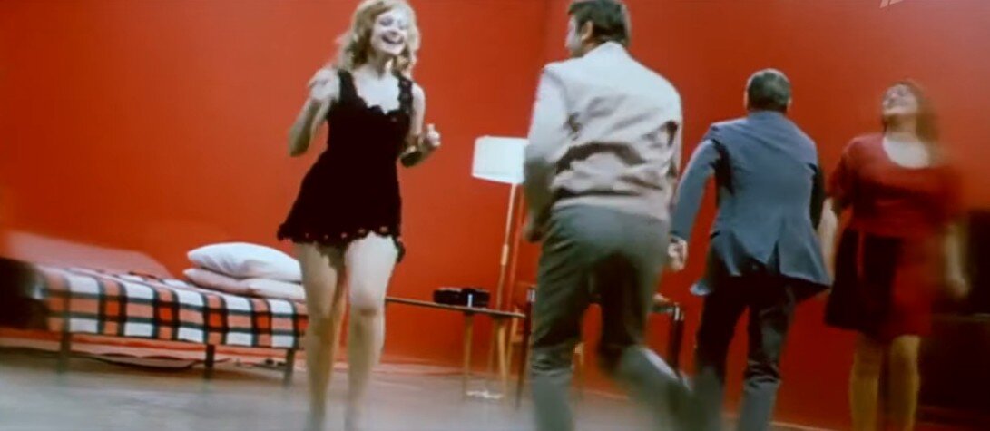 Советская кинокомедия "Неисправимый лгун" не претендует на звание "шедевра". Это простенькая комедия, где сыграли неплохие актеры - Георгий Вицин, Владимир Этуш, Инна Макарова, Борис Сичкин, Николай Парфенов, Иван Рыжов и другие. Также в этом фильме большую роль сыграла и известная певица Эдита Пьеха. Наверняка вы эту комедию смотрели. Может быть даже не раз. Я тут решил ее пересмотреть. И в одном из эпизодов мне показалось забавным - как же лихо оттанцовывает Георгий Михайлович, когда ему рассказывают то, что якобы было с ним на самом деле. Обычно Георгий Вицин играет таких спокойных и немного стеснительных персонажей. В принципе, его герой парикмахер Тютюрин таким и был. Но вот в представлении директора салона-парикмахерской Тютюрин в хорошей компании под воздействием алкоголя мог выдать и кренделя. И нам показывают эти "кренделя", где Георгий Вицин очень даже "зажигает" с какой-то молодой красивой девушкой: И даже так запросто шлепает ее в танце: Не самый привычный нам образ а