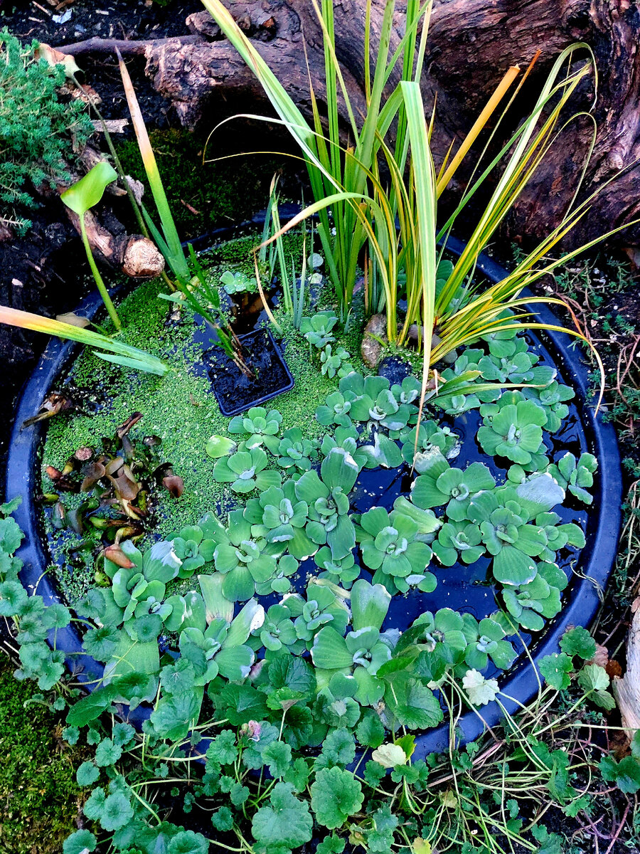 Пока в этих бочках тоже экспериментально плавают запасы нежных водных растений.