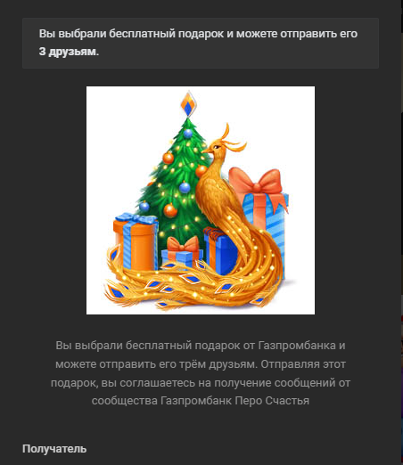 6. Можете написать сообщение к подарку, поставить галочку (не обязательно) и нажать "Отправить".