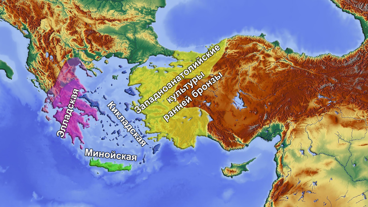 Насчёт использованного мной слова "держава". Конечно, это анахронизм, и вообще неправильно. Речь в это время идёт только о большом количестве отдельных поселений, люди в которых говорили плюс-минус на одном языке (но это не точно), принадлежали одной культуре (или не совсем), этакий ЭгейСоюз (от слова Эгейский, а не Эгегей). Возможно, не все поселения вступали в этот союз добровольно, и не факт, что этот союз в то время был хоть сколько-то признан самими участниками, но определенный уровень единства и взаимоотношений у них был. Возможно, вас устроит термин "протогосударство", хотя бы потому что он достаточно абстрактный. Или "контактная зона", что его слегка уточняет.