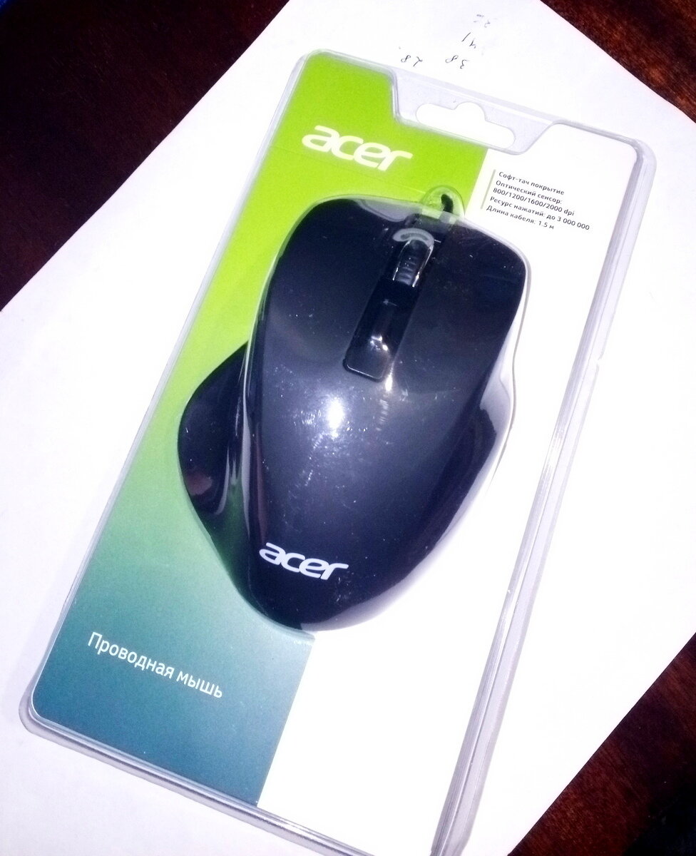 Данная мышь, Acer OMW120, принадлежит к бюджетному сегменту. Вряд ли стоит считать ее игровой и даже "игровой". Скорее, это офисный "грызун", путь и "эргономичной" формы. Коробка у данной мыши отсутствует, она запаяна в прозрачный кейс, как и все ее аналоги в данном бюджете. На обратной стороне упаковки указаны общие характеристики продукта. Внутри, кроме самой мышки, лежит краткая инструкция: Сама мышь довольно компактная, асимметричной формы, с ярко выраженным упором слева. Такие мыши нужно обязательно "примерять" перед покупкой. Например, для меня, такая форма не оптимальная. Кроме того, мышь такой формы не подойдет для левшей. И вот тут вылезает минус бюджетной упаковки: вы ее сможете только рассмотреть, но не вытащить и проверить на эргономику. Некоторые скажут, что можно примериться и через упаковку. Но, нет: так не удобно. Мышка очень легкая (заявлено 82 грамма), может я просто привык к игровым моделям, но ощущения необычные. Ножек всего три, обычный "тефлонообразный" пластик. Н