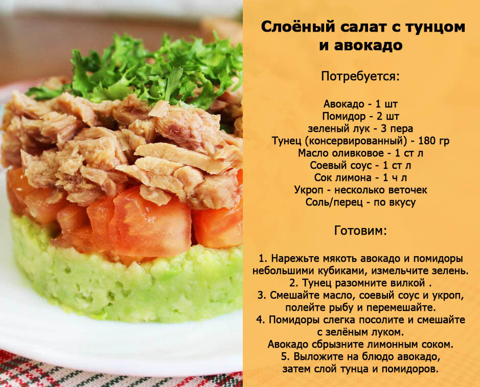 🌱Слоёный салат с тунцом и авокадо 🌱Салат со свёклой и козьим сыром 🌱Салат с курицей, фетой, помидорами и огурцом 🌱Салат с креветками и лососем