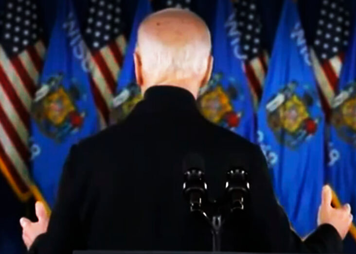 Байден снова чудил: обнимался с призраком, повернувшись к залу задом