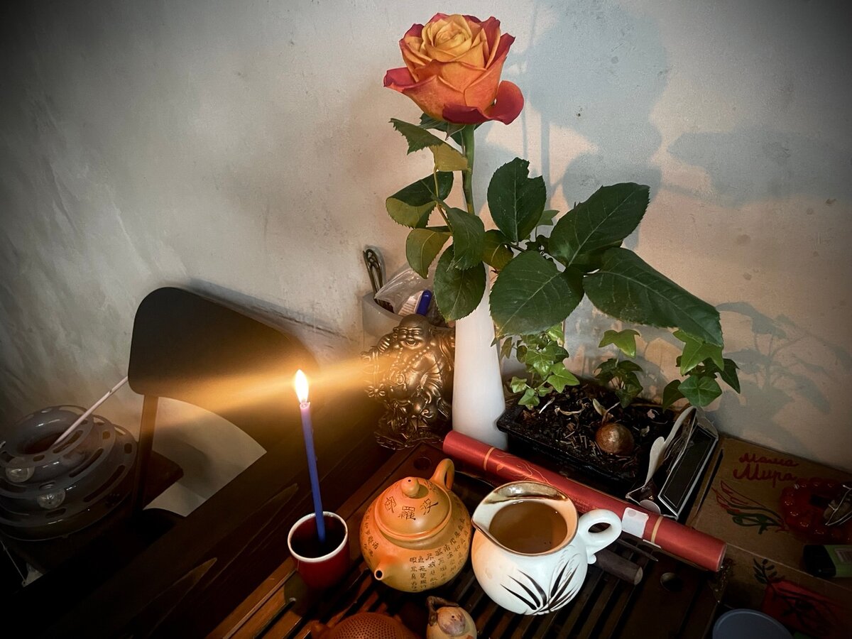 Так наблюдал он за течением своих мыслей, просто давая им быть, проплывать, растворяться и заканчиваться. Словно тот самый чай. Возникающий внутри, благодаря встрече ароматных листьев и кипятка, текущий по носику, растекающийся по пиалкам и растворяющийся, разливаясь теплыми потоками в телах людей, оставляя лишь состояние.