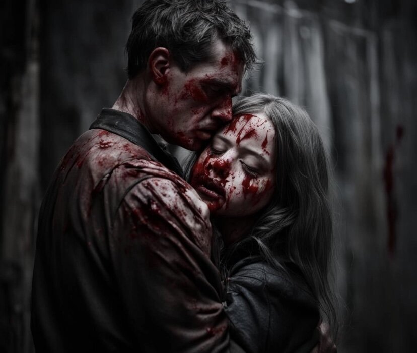 Схватившись за голову, я испустила дикий крик. С верхушек деревьев и забора поднялась стая птиц. Посмотрев на свои руки, я зарыдала. Вся майка, юбка, руки, лицо были измазаны кровью. Вова подошёл ко мне и попытался успокоить.