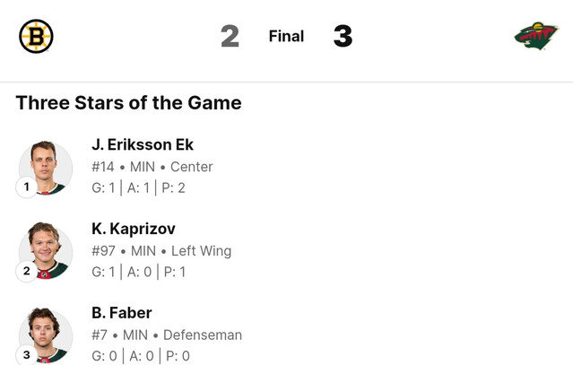 Кирилл Капризов набрал мощный ход в преддверии праздников: российский нападающий «Миннесоты» во второй раз за последние 5 дней огорчил «Бостон», поспособствовав очередной победе отчаянно борющихся за выход в плей-офф «Уайлд». В середине второго периода поединка с «Брюинз» 97-й номер «дикарей» поразил ворота Линуса Улльмарка, эффектно обыгравшись с Алексом Голигоски. Эта шайба стала для Капризова 12-й в текущем сезоне, а НХЛ признала Кирилла второй звездой встречи с «Бостоном». Отличная форма, которую набрал 26-летний российского форвард «Миннесоты» впечатляет американских поклонников хоккея. @AlexMicheletti:– Кирилл забивает 3 матча подряд. Можно уже смело говорить, что он по-настоящему раскочегарился. @sethtoups:– Кирилл и Голигоски разыгрыли шикарную комбинацию, этот гол – настоящая красота. Капризов просто доминировал при некоторых розыгрышах большинства, и «Уайлд» были обязаны забивать еще, но каким-то образом не могли. @ulysses_76:– Капризов возит весь «Бостон» как хочет. @MnTwins