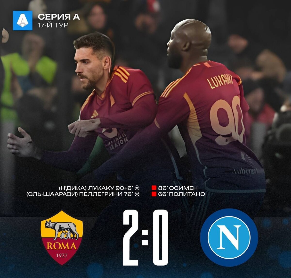 ✨ Потрясающая победа римлян над неаполитанцами. Правда, «Наполи» играли вдевятером, но это не важно. Поздравим Жозе Моуриньо с победой 🇮🇹Рома 2:0🟥🟥Наполи🇮🇹