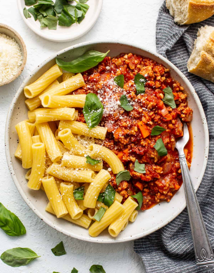 Традиционно итальянский соус Болоньезе готовится из свинины и говядины и мало кто пробовал готовить его из куриного фарша, а очень зря! Куриное мясо менее жирное и легче переваривается организмом, а паста Болоньезе с ним получается не менее вкусной, чем оригинальная версия, а на мой взгляд, даже намного лучше! Также наша паста насыщена овощами, что тоже играет немаловажную роль. Ингредиенты: Дополнительно: Способ приготовления: 1. Добавьте в небольшую миску 1 чайную ложку соли, чесночный порошок, паприку, тимьян, розмарин, петрушку, орегано, хлопья красного перца и черный перец и перемешайте. Отложите в сторону. 2. Нагрейте большую жаровню на среднем/сильном огне и добавьте в нее 2 столовые ложки оливкового масла. Когда масло станет ароматными, выложите куриный фарш и разбейте курицу на небольшие кусочки деревянной ложкой. 3. Добавьте к курице специи и еще раз перемешайте. Готовьте около 5 минут или пока она не будет почти готова, но в ней еще останутся розовые кусочки. Достаньте куриц