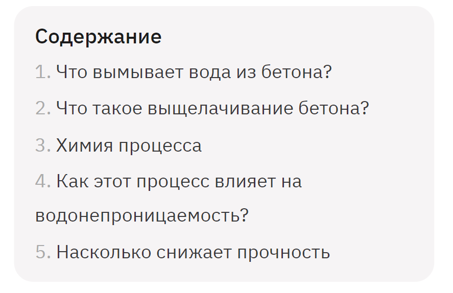 Вымывание этих веществ из бетона в результате выщелачивания может привести к ухудшению его свойств, снижению прочности и долговечности, а также способствовать коррозии арматуры и другим проблемам.