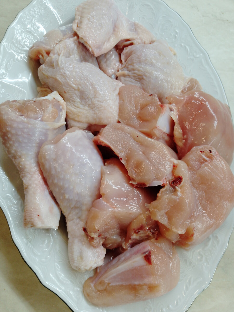 Вкусное, сытное и очень ароматное блюдо никого не оставит равнодушным. Нам понадобится: 1 целиковая курица ( у меня была курица на 1,5 килограмма) Пачка сырокопченого бекона (у меня пачка 150 гр.) 2 больших репчатых лука 2-3 больших помидора 2 красных сладких перца 1 ч.л. с горкой сладкой паприки 1 стакан бульона (я добавляю воду) 250 гр. Сметаны ( у меня 20 процентов жирности) Соль Курицу режем на порционные куски. Далее обжариваем на сковороде только что бы придать ей румяную корочку, до готовности доводить не надо. В некоторых источниках рекомендуют перед обжариванием обвалять курицу в муке. Если не хотите обжаривать курицу, то можете положить ее в соус сырой, в этом не будет ошибки, встречаются и такие варианты рецепта. Курицу обжарили и отложили пока в сторону. Готовим соус. Для этого мелко нарезаем бекон. В некоторых рецептах количество бекона сокращено до 50 грамм, но мне кажется этого мало. Бекон обжариваем на сухой сковороде без добавления масла. Далее добавляем